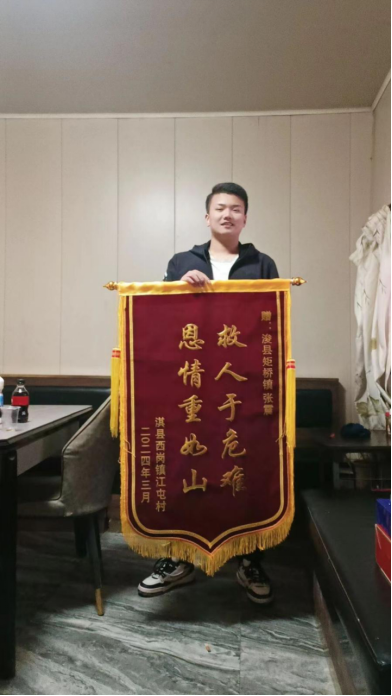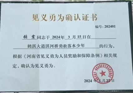 2024年3月15日傍晚,淇河桥段发生惊险一幕。一名女孩不慎从桥上落水,张震正好路过,看见后毫不犹豫跳下河,不顾早春冰冷刺骨的河水,奋力游向女孩。游到女孩身边后将救生圈套在她身上,拖拽着她向岸边游去。在救援过程中,他忘却了寒冷和疲惫,心中只有一个信念:一定要将女孩安全救出。最终,他成功将女孩救上岸,得到了在场市民的高度赞誉。